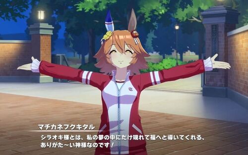 自分が作り上げた妄想の神を信仰し、卜占に嵌るウマ娘を解放する話。 主人公は運命の人として逆スカウトされフクキタルのトレーナーに就任する。 占いに翻弄されるフクキタルの依存を見かね、自立できるよう治療が始まる。 フクキタルの信仰は自信の無い自分…