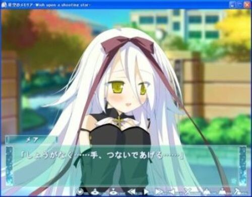 星空のメモリアのメアシナリオは、乙津夢シナリオクリア後にルート解放。個別じゃなく夢ルートからの分岐。 夢に拒絶された洋くんを慰めようとするメアに応えるか否かで選択肢出現。 まぁ、このシナリオはオマケみたいなもので、洋くんの支えにメアがなるよ…
