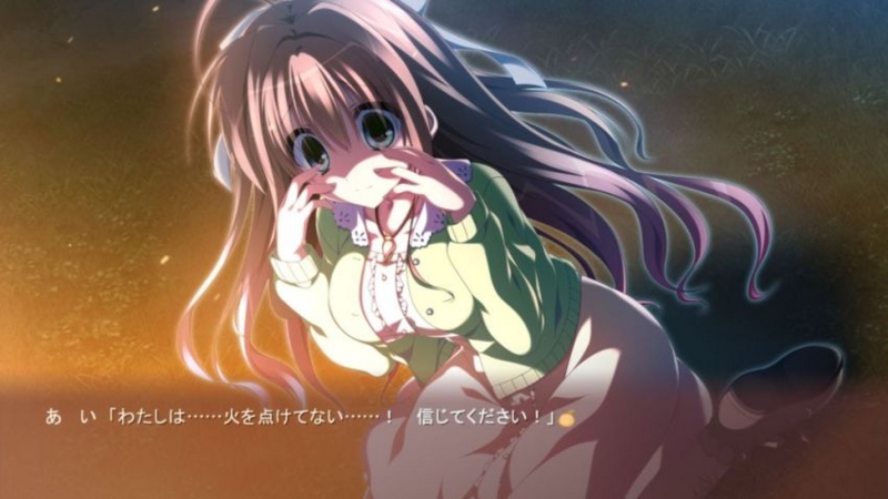 - 主人公くんの父親自殺事件の真相を知ったあいちゃんは、自分の考えと主人公くんの父親の行動に共通点を見出し、再び悲劇に酔っていくのです。そんなあいちゃんを変えるのは並大抵ではありませんね。シナリオライターは主人公くんにどのような行動をとらせるのでしょうか?ドキドキ・ワクワクだぜ!と思っておりましたら・・・。なんと主人公くんが村に放火しちゃうぞ☆とか言い出し、あいちゃんを試すのです。メンヘラなお前がそんなに罪とか罰とかを求めるなら、俺はお前の幸せのために、村を放火して記憶に刻んじゃうよーン、ほらほら燃えちゃうよーン(演技臭丸出し)。メインヒロイン「ヤメテー、ワタシガマチガッテイタワー」。こうして、悲劇に酔いたい症候群から目覚めた少女は現実を見ることができましたとさ、めでたしめでたし。なんかあいが転向するのもあっけなさすぎだし、主人公くんがとった手段も陳腐っぽく感じるのですが、他のプレイヤの皆様はどのように感じられたでしょうかね?