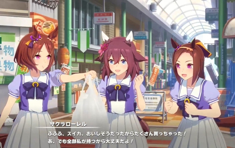 ウマドルスマートファルコン、この前実装されたばかりのコパノリッキー、おばあちゃん属性で一世を風靡したワンダーアキュート、ホッキ貝大好きとキャラ作りをする苫小牧のルコドル:ホッコータルマエのコント。ホッコータルマエがコパノリッキーの風水に対して塩対応過ぎる。