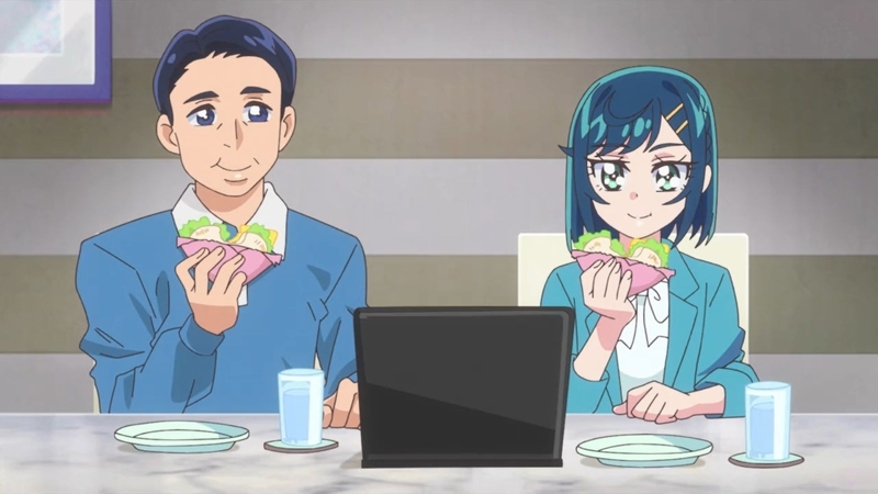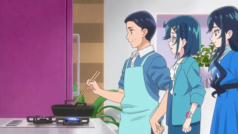 - 今回のお話では何気に芙羽家(父)が大活躍する。この前のお当番回では家族が揃っているのに同じものを食べず個食に走って寿司を食べたり、ここねの話をろくに聞かず化粧品を食べ物と勘違いするなどのノンデリっぷりを見せていた。だが今回は父が料理人だと判明し、特産品を活かした料理開発を行い新たな郷土料理になりうる新メニューを創作したり、閉ざされたここねの心をオープンハートさせるために家族の象徴・ボールドーナツを自ら作ったりと面目躍如する。この父の活躍のおかげで、両親とも一緒にいたいし友達とも別れたくないという本音を引き出すことができたのである。