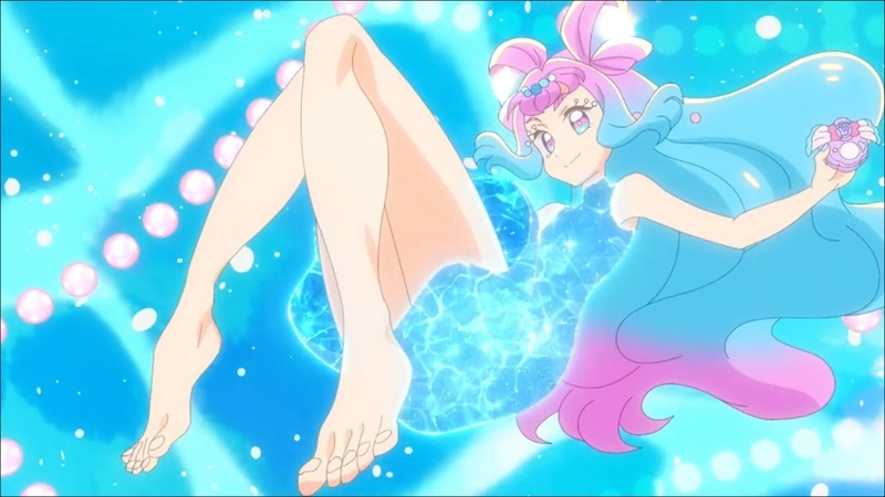 - 結局ローラは逃げきれず敵の執事から気功波系の遠距離攻撃を食らって気絶し海底に落ちていくのだが、なんとここでもくるるんが助けてくれる。なんとローラが目を覚ますとそこは女王様の御前であり、くるるんが助けて連れて来てくれたのだという。くるるんがどのようにしてローラを救うかは詳述されずに捨象されていたが、まさにくるるん大活躍である。そして女王様はローラを労い、時期女王候補として十分な活躍をしたとして称賛し、ここでやめても良いと述べる(カマをかけたか本当にそう思っていたのかは定かではない。フツーに視聴すると前者か?)。これに対しローラが奮起するとその意気や良し。女王様から新アイテム(販促玩具)が贈られ、ローラはプリキュアたちの下へと急ぐ。