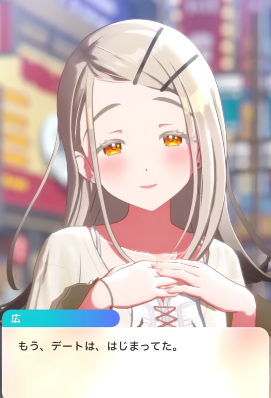 - 大阪公演にやってきた篠澤広は学Pをデートに誘う。コンプラ意識がしっかりしている学Pは広の誘いになど乗らないがそれはそれとして、広用の観光プランをばっちり用意してきていた。しかも数種類も。そして学Pの予定では広と一緒にワイワイとプランを選ぶところまでも含めて観光だったのである。広はこれに対してもうデート始まってたと喜び妖艶な笑みを浮かべる。さらに広の攻勢は続き、観光中クラスメイト達に電話。それは公演への不安を紛らわせるものであり、敏い美鈴には見抜かれてしまう。だが佑芽がすかさずフォローを入れ、学Pならきっとなんとかしてくれると絶妙なパスをいれ、学Pの外堀を埋めてしまうのである。学Pは不安解消を請け負うしかなく、広のクラスメイトからキャアキャア言われると共にエスコートに邁進せざるを得なくなるのであった。なんだかんだいって広の目論見にハマってしまう学Pを是非ご堪能ください。
