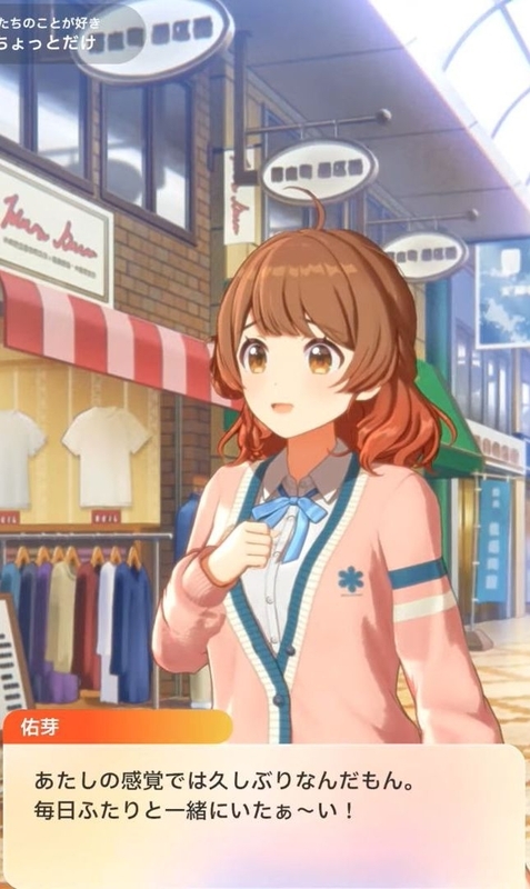 年度末になり出会いと別れのシーズン。そのためズッ友がテーマにシナリオが綴られる。補習組3人衆は公園に立ち寄り、過去の自分たちを振り返る。サポカ√ではPがいないが初星学園のカリキュラムをこなす中で着実に成長していた。千奈や広は当初ブランコすら漕ぐことができなかったが、今では逆上がりにチャレンジできるようになるまで成長していた。また3人はそれぞれ仕事で忙しくなってきた様子が語られることになる。するとどこからともなくセンチメンタルな気分が醸成されてきて、仕事で忙しくなるのは良いことだけど、これまでのように気軽に会えなくなっちゃったねと寂しさを抱く。そんなわけで買い物が済んだら駄弁りタイムを満喫し、3人の仲をより深めるために公園に繰り出すことになる。そこで広は恥ずかしい台詞を連発するのだ。水を向けたのは佑芽であり広に対し、友達であることの確認作業をしなくなったねと振る。それに対して広は当初、友達とは何か分からなかったことを告白。そしてその確認作業をしなくなったということは千奈・佑芽を心から友達と思っているのだと。そしてこれから卒業して大人になって中々会えなくなってしまったとしても、3人はズットモだよと告げる。広の恥ずかしい台詞に千奈は照れながらも、その友情を確かめ合うのであった。
