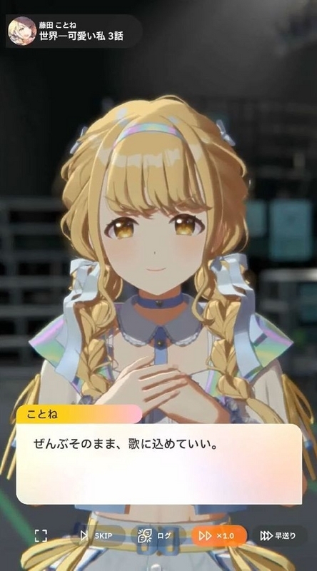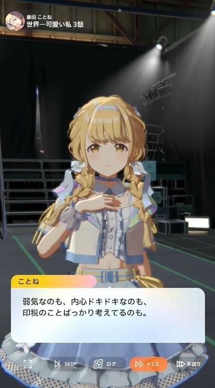 そしていよいよライブ本番。カワイイ衣装に身を包んだことねは印税のことを気にする。楽曲が一般販売されて収入を得ることはことねが目指してきた一つの到達点もあった。喜ぶことねだが、一方でここで今まで自分が抱えていた苦悩をPに吐露することになる。自分は基本的に弱気であること。それじゃダメだとずっと思ってきたこと。ポジティブな曲に合わせようとしなければと思ってしまったこと。それ故に空回りしてしまったこと。等々。そんなことねに対してPはそんなことはしなくていい、曲に合わせて歌うことなど誰も藤田ことねには求めていない、つまりはありのままの自分がそのままで魅力になると説く。咲季とのやり取りで自分と向き合ったことねにはそのPの意図が良く分かったのだ。弱気なのも、内心ドキドキなのも、印税のことばっか考えているのも、全部そのまま歌に込めて良いと開眼する。こうしてことねはカワイイ自分を高らかに歌い上げたのであった!!