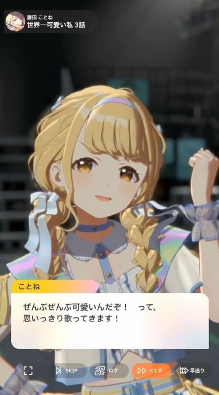 だがことねはソロ曲にイマイチ乗り切れないでいた。世界一カワイイ自分を高らかに歌い上げる部分は良く歌えたのだが、「できるできるできる。そうだ、信じてくれる人がいる」の歌詞に自分をシンクロさせられなかったのだ。苦悩することねの前に現れたのは何とお姉ちゃん属性を自称する花海咲季であった。咲季はことねの悩みを聞くと無理して曲に合わせなくて良いと助言する。ことねは弱気な所も含めて自分が自分を大好きなんでしょ?世界一カワイイを自称するアイドルはたくさんいるけどこの楽曲を作ってくれた人はことねが世界一カワイイと信じているんでしょ?と指摘するのだ。ことねが自分を信じてくれているPに思い当たり恥ずかしそうになる描写はとても可愛い。世界一カワイイ。そんなわけでことねは咲季のおかげで弱気な自分と向き合うことが出来たのだ。