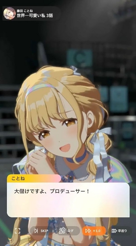 藤田ことねはバイト戦士で社会経験も多く大家族の長女であるため精神的に成熟していた。そのため対人関係に長けていたし、初星コミュでは咲季や手毬の調整役として主人公的ポジションを確立した。だが彼女の本質には弱気な所があり、その弱さをプロデューサーには見せるのである。ことねの家庭は決して裕福とは言えず、そのためことねはアイドルになり家にカネを入れたいと思っていた。だが無理して入った芸能系学校は学費もバカ高くて支払いが困難になり父親は出奔。学費滞納による退学の恐怖と戦いながら、ことねは焼石に水とは分かっていながら、バイトに明け暮れていたのである。そのため疲労によりパフォーマンスが低下し学園内での評価も低いという悪循環を生んでいた。以上によりことねは劣等意識を抱いており、基本的には明るくノリノリな風に見えるが、弱気な感情を抱くことも多くメンタル的に脆い所があった。多くの生徒の中からことねを選びとったPは、ジリ貧な境遇を改善してくれたスパダリであり、今度はソロ曲まで用意してくれたのだ。